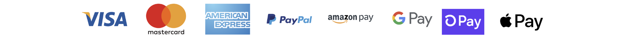Icons of Visa, Mastercard, American Express, and Discover credit cards.
